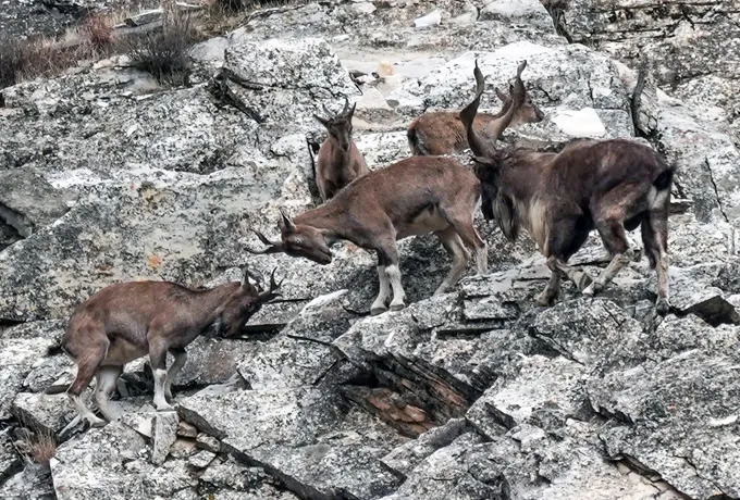 Winter is the breeding season for markhor. Normally, the males and females are separate, but during breeding season, males will come down to lower-altitude areas in search of herds of females. Markhor males, are usually very difficult to see during other times of the year, but it might be more likely to see them in December - January. And if you are extremely lucky, you might even get to see the males fight each other in a dynamic display of head butting.
