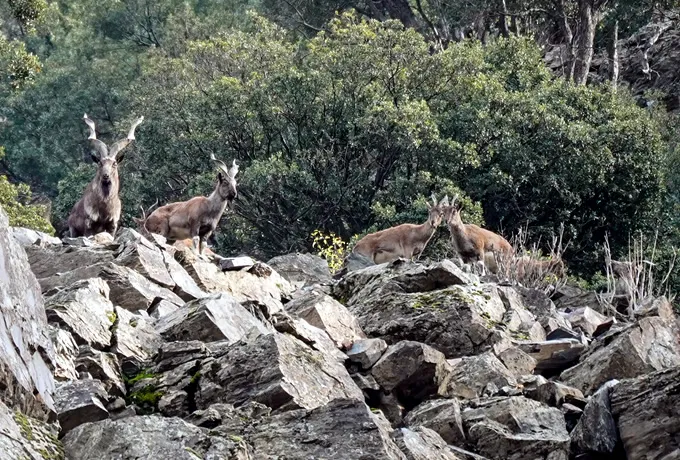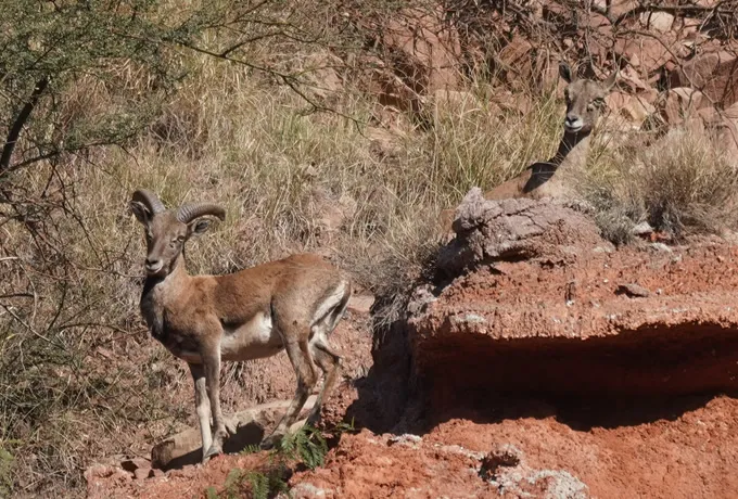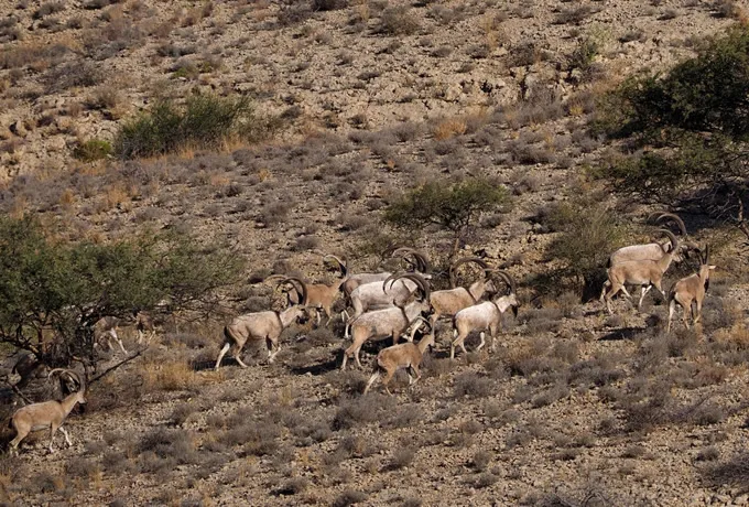 Afghan urials and Sindh ibex can both be observed in Kirthar National Park. The Afghan Urials main habitat is on gentler slopes, compared to the Sindh Ibex which live among steeper cliffs.