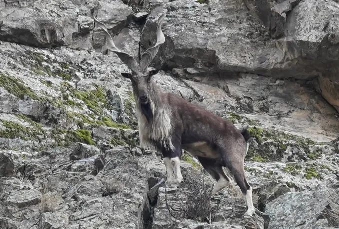 These markhor have a less spiraled rotation of the corners of their horns, which extend out wider, compared to other markhor. They can be seen in the Astor Valley.