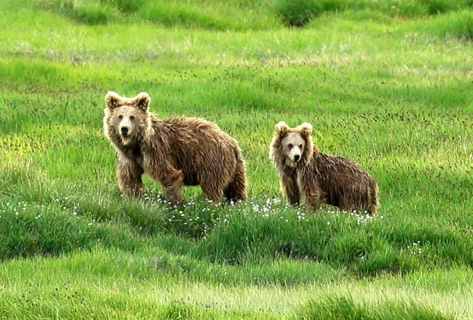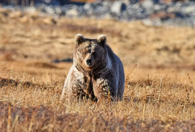 Deosai National Park in Pakistan is a high-altitude plateau with an average of 4,100 meters (13,451 ft) elevation and is one of the places these rare bears can be seen. In 1993, the Park was established to protect the Himalayan Brown Bears, whose populations were plummeting. The bears leave their hibernation dens around May, and they can be seen grazing in the Plateau in the summer month, and occasionally hunting marmots in the fields.