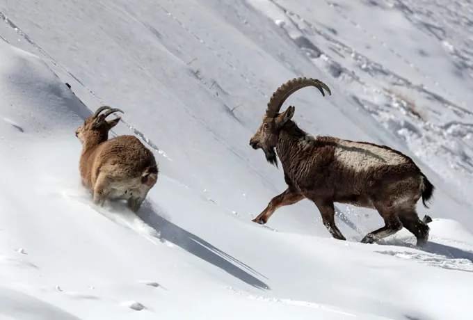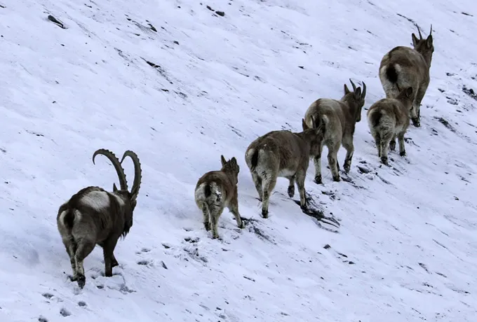 Alpine Ibex are a species of wild goat, found in the areas of the European Alps to the Arabian Peninsula, in Central Asia to India, and Siberia. The subspecies that are observed in northern Pakistan are called Himalayan Ibex, Carpa sibirica sakeen.