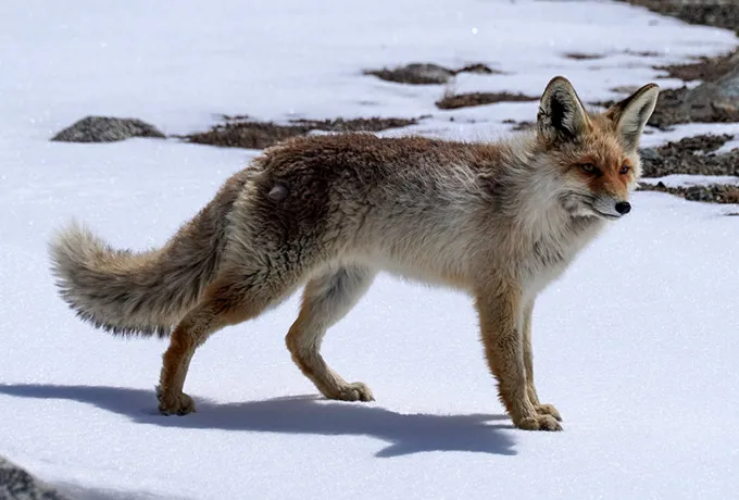 The top wildlife you might want to see at Khunjerab National Park is probably the snow leopard. Thanks to improved conservation policies for the Himalayan Ibex, the population has increased, and they are much easier to observe than in the past. In the high-altitude areas, one can observe the Long-tailed Marmot, Tibetan Wolf ; the Golden Eagle which might be hunting for small animals or birds; or you might see the Himalayan Vulture, the Cinereous Vulture, or the Lammergeier (Bearded Vulture) as they search for carcasses. Commonly seen along the Karakoram Highway are the animals that hunt for smaller prey like the Red Fox, Chukar Partridge, Red-billed Chough, and Yellow-billed Chough.
