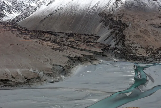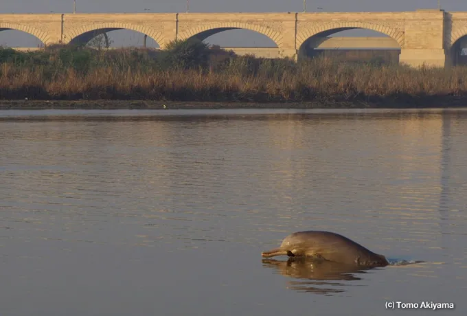 Originating from the Ladakh region of India, the Indus River, travels south through the Skardu and Gilgit, and then continues flowing through Pakistan into the Arabian Sea. From the banks of the Indus River near Sukkur, the Indus River Dolphin can be seen. Due to the construction of the barrage (irrigation dam), they are only found in the middle 97 km section, but they can be seen both from boat and from the shore.