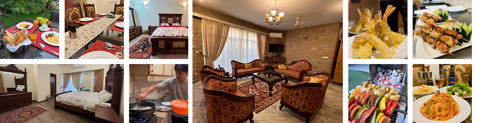 イスラマバードの到着・出発前の滞在や、長期滞在のコストダウンにお役立てください。 全6部屋でガーデン、ダイニング、TVサロンもあり、長期滞在も快適にお過ごしいただけます。Indus Caravanのオフィスも併設されており、イスラマバード滞在中の専用車・通訳手配も承ります。