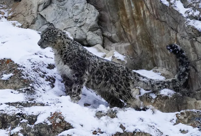 「幻の動物」ユキヒョウを狙い上部フンザ、クンジュラブ国立公園へ。アイベックスを追い標高3,000~4,500m付近に降りてくるユキヒョウを探します。早朝、ユキヒョウの痕跡探しから始まり、足跡や獲物の近くでユキヒョウが見つかることも。冬のカラコルム山脈の景色、凍結したパミール川の景色も美しい地域です。