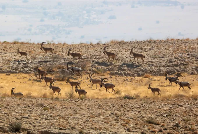 シンドアイベックスはアラビア海にも近いキルタール国立公園Khirthar National Parkで観察することができます。美しい砂漠の岩山の風景のなかで複数のオスが群れて歩く姿は圧巻です。警戒心が強く、人との距離は 800 mほどないと落ち着かないようで、観察のためには静かに近づく必要があります。