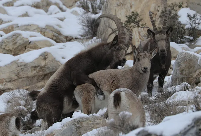 12月はマーコールの繁殖期。オスとメスはふだん離れて生きていますが、この季節になるとメスとの出会いのためオスが標高の低い地域へと集まってきます。つまり、ふだんは見ることが難しいマーコールのオスがこの季節には観察できるチャンスがあります。そして順位をつけるためにオス同士がツノをぶつけて戦う迫力あるシーンにもこの季節なら運が良ければ出会うことができます。